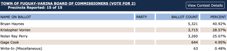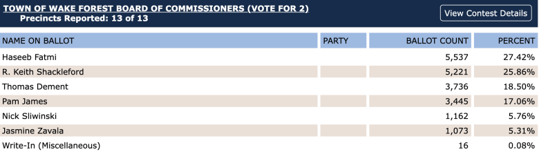 Here are the results for Wake Forest’s board of commissioners: