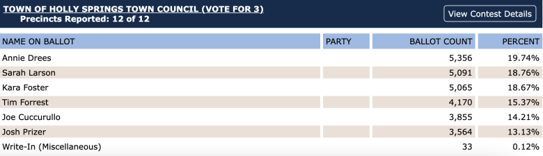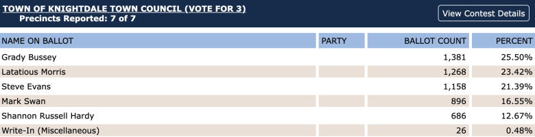 Here are the Knightdale Town Council election results: