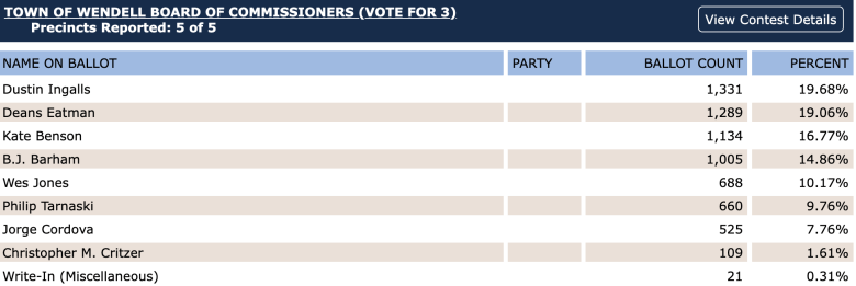 Here are the results for Wendell’s board of commissioners: