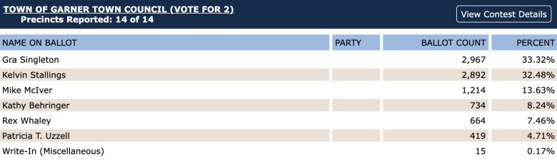 Here are the results for the Garner Town Council: