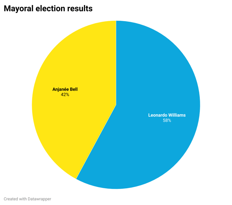 Mayor Leonardo Williams won his bid for reelection over challenger Anjanée Bell, and incumbent Ward 3 representative Chelsea Cook won decisively over Diana Medoff to earn their first full term on council.