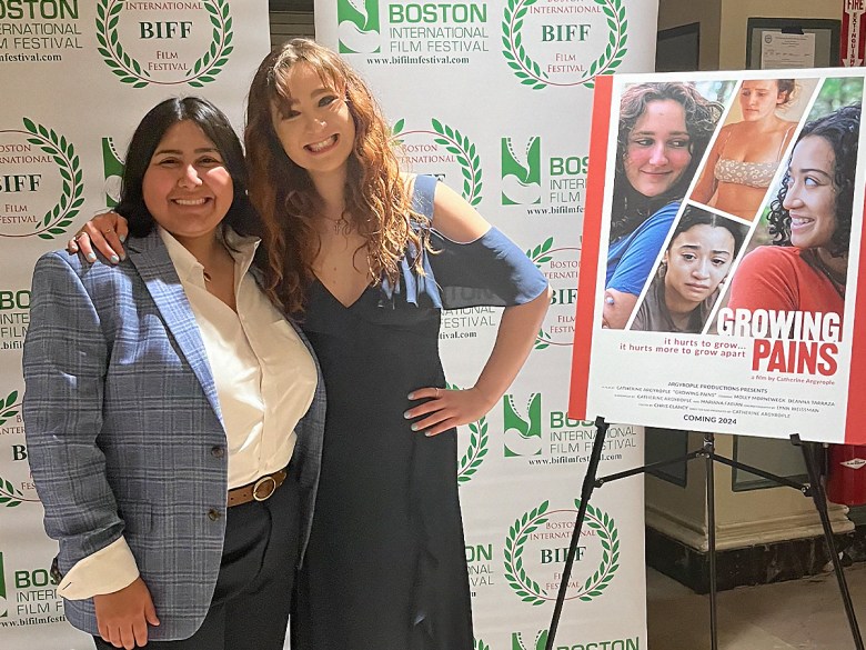 Argyrople, a graduate of Northeastern University, launched a production company, Catalyze Her, and built a team to make Growing Pains. The film, shot in Boston over 21 days in the summer of 2022, was financed through crowdfunding. The cast—including its lead actors Deanna Tarraza, who plays Nat, and Molly Morneweck, who portrays Zoe—all came from the Boston area. The 110-person team included a 25-person crew and dozens of extras.
