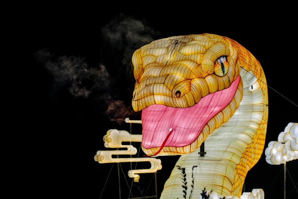 Determined solo visitors might be able to speed-walk through the festival in little more than an hour, but they’d miss out on some of the most remarkable moments. As Lewis says, “There’s something around every corner.” In one hidden alcove, you can take a photo underneath a bamboo arch, complete with pandas. And you don’t want to miss reading about the zodiac animal for your birth year.